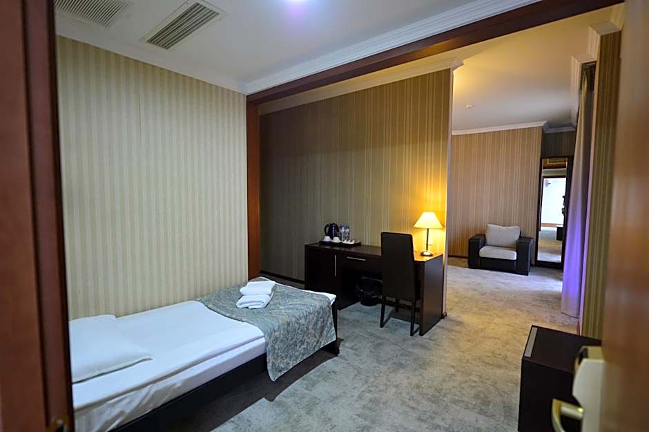 This suite features air conditioning, a balcony, fridge, electric kettle and flat-screen TV with satellite channels. The bathroom includes a hairdryer, bathrobes and slippers.